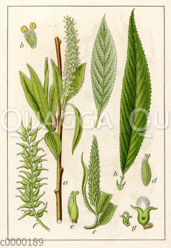 Knack-Weide, Bruchweide: Zeichnung/Illustration/Chromolithographie – Salix fragilis – –