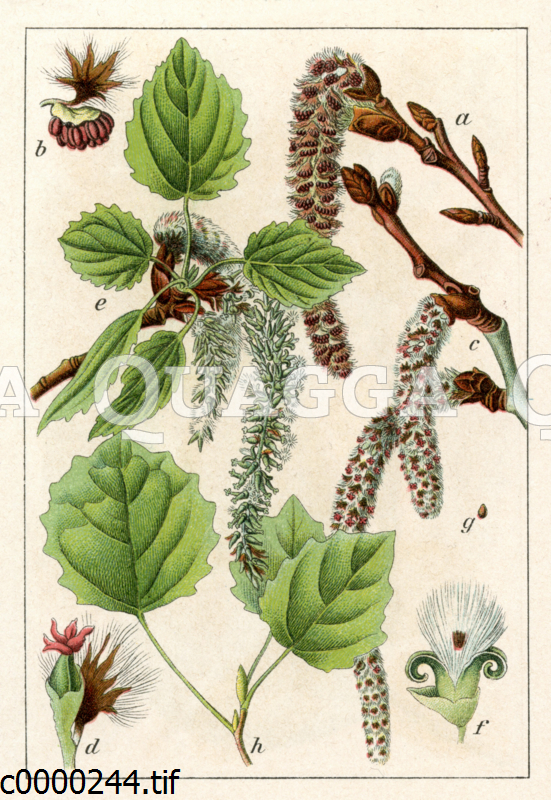 Espe: Zeichnung/Illustration/Chromolithographie – Populus tremula – aspen – tremble