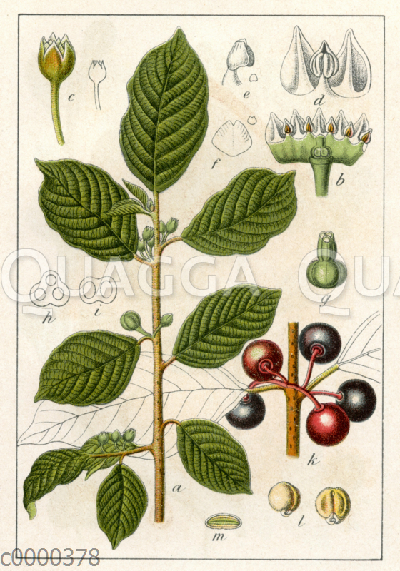 Echter Faulbaum: Zeichnung/Illustration/Chromolithographie – Rhamnus frangula – –