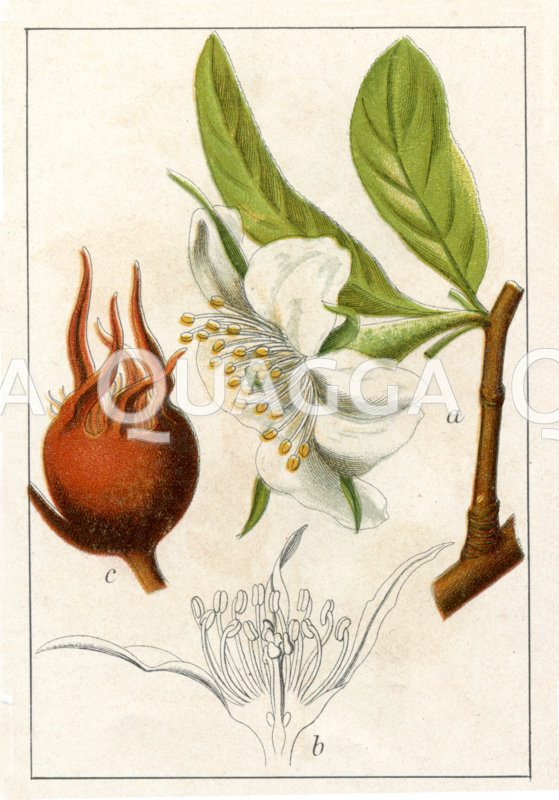 Mispel: Zeichnung/Illustration/Chromolithographie – Mespilus germanica – Medlar, Genuine Bildnr.: c0000469 Bildtyp: Chromolithographie Urheber: Ausgelieferte Bildgröße: 4.234 x 6.064 Pixel, vgl. dazu unseren Pixelrechner Dateigröße als jpg: 14.3 MB Erscheinungsdatum: 1904 Old fruit variety; Old fruit varieties; Food; useful plant; useful plants; medlar; Tree; Trees; Foodstuff, Ancienne variété de fruits ; Anciennes variétés de fruits ; Alimentation ; Plante utile ; Arbres ; Arbres ; Plantes utiles ; Nèfles ; Plantes utiles ; Produits alimentaires ; Plantes utiles Serie: