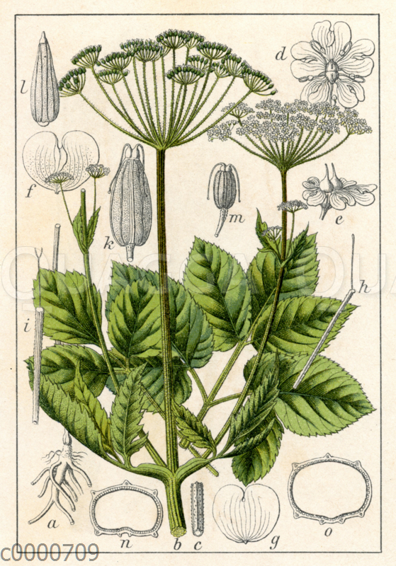 Giersch: Zeichnung/Illustration/Chromolithographie – Aegopodium podagraria – –