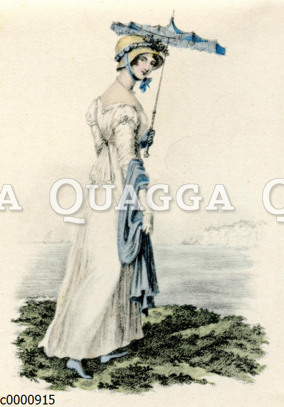 Damenmode. Aus: La Belle Assemblée, London, 1813: Zeichnung/Illustration/ – – Women’s fashion. From: La Belle Assemblée, London, 1813 – la mode féminine. De: La Belle Assemblée, Londres, 1813