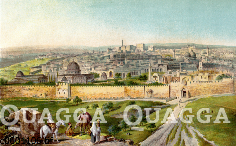 Blick auf Jerusalem vom Ölberg aus: Zeichnung/Illustration/Chromolithographie – – view of Jerusalem from the Mount of Olives –