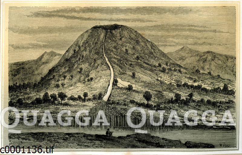 Basaltberge: Zeichnung/Illustration/Holzstich auf getöntem Papier – – basalt hills – collines basalte
