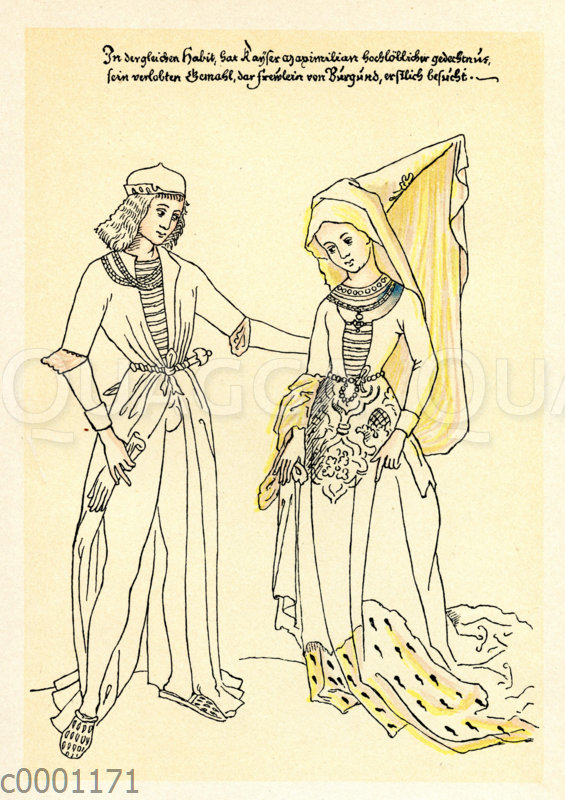 Maximilian I. und seine Braut Maria von Burgund: Zeichnung/Illustration/Farbholzstich – – Maximilian I and his bride Mary of Burgundy – Maximilien Ier et son épouse Marie de Bourgogne