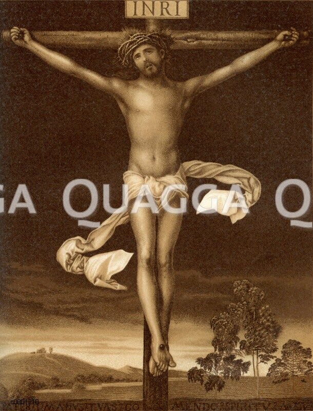 Albrecht Dürer; chromolithography; chromolithograph; color printing; color lithography; color lithograph; graphic; graphics; INRI; Illustration; Illustrations; Jesus Christ; Cross; Crucifixion; litho; lithograph; lithography; crucified; historically; historic; vintage,