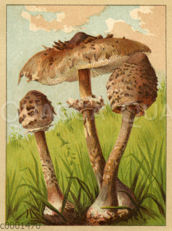 Großer Schirmpilz: Zeichnung/Illustration/Chromolithographie – Lepiota procera – –