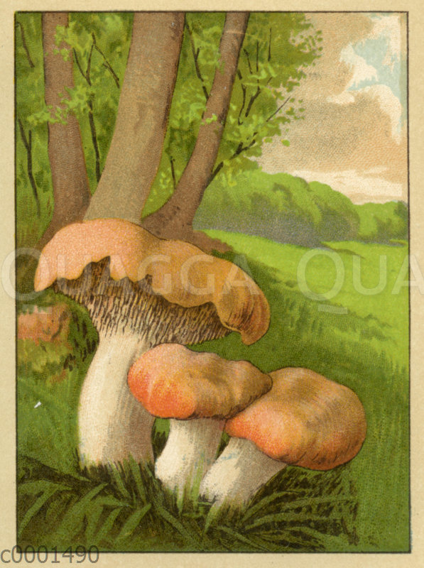 Stoppelpilz: Zeichnung/Illustration/Chromolithographie – Hydnum repandum – –