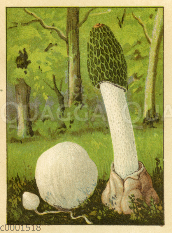 Stinkmorchel: Zeichnung/Illustration/Chromolithographie – Phallus impudicus – stinkhorn – satyre puant