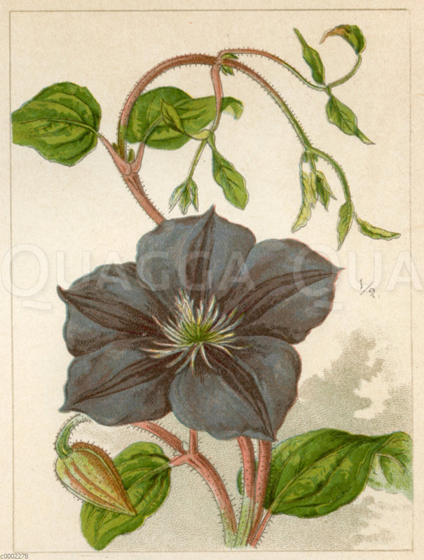 Clematis lanuginosa: Zeichnung/Illustration/Chromolithographie – Clematis lanuginosa – Clematis lanuginosa f. Jackmanii – clématite laineuse f. Jackmanii