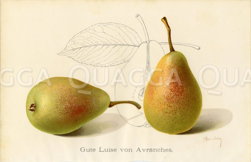 Birne, Birnensorte: Gute Luise von Avranches: Zeichnung/Illustration/ – – Pear, Pear variety: Good Louise of Avranches –