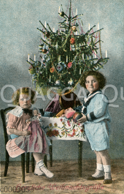 Christmas tree; Holiday; Public holidays; Children; Christmas; Christmas tree; Postcard; Sailor suit; Doll; tablecloth, arbre de Noël; vacances; vacances; enfants; Noël; Noël; arbre de Noël; carte postale; Carte postale; Costume de marin; poupée; nappe