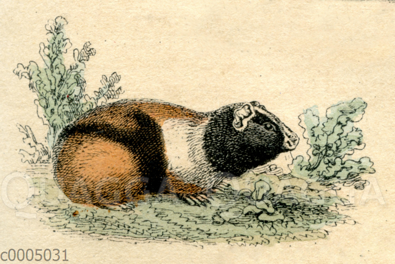 Meerschweinchen: Zeichnung/Illustration/Farbholzstich – Cavia porcellus – Guinea pig – cochon d’Inde