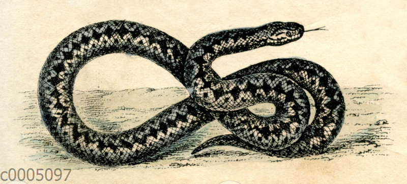 Viper, Kreuzotter: Zeichnung/Illustration/Farbholzstich – Vipera berus – Adder, common viper