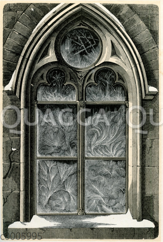 Gotisches Fenster mit Eisblumen: Zeichnung/Illustration/ – – Gothic window with ice flowers –