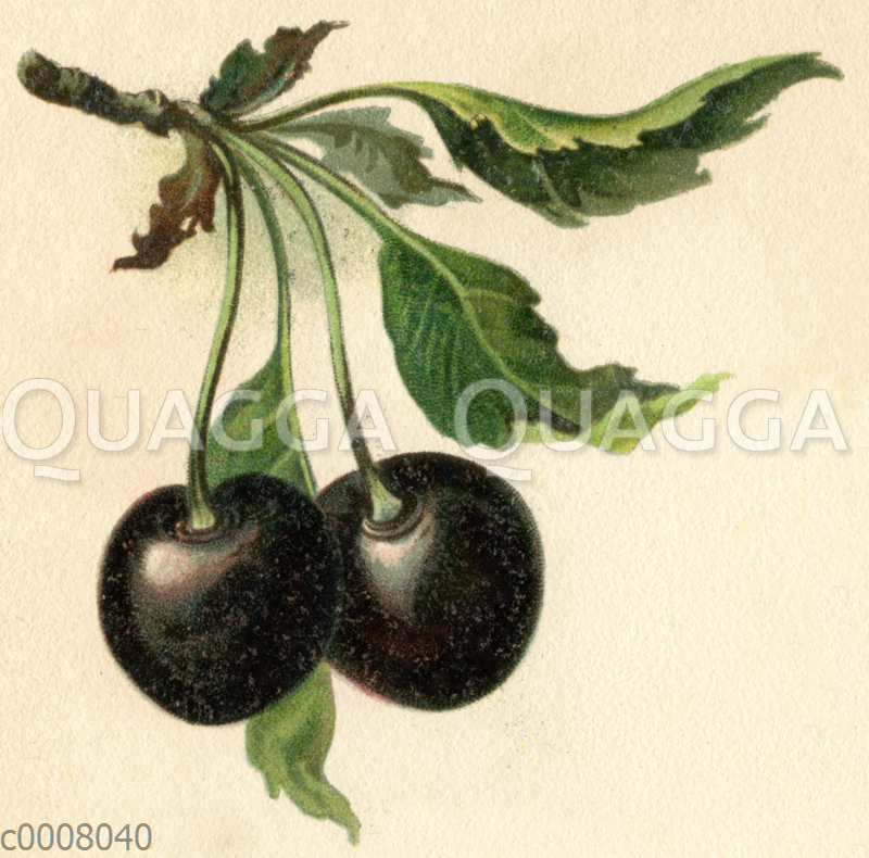 Herzkirsche: Zeichnung/Illustration/Chromolithographie – Prunus avium – Cherry