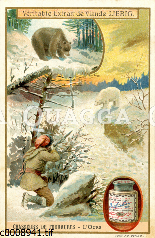 Liebig images; Icebear; Bear hunting; Liebig image; Liebigbilder; Fur hunting; Fur; furs; Liebig’s meat extract; Oblate; Advertising image; Liebig-image; French; Liebig picture; Trappers; Trapper; Justus von Liebig; Liebig; Hunter; Hunt; to hunt, Images Liebig; Ours polaire; Chasse à l’ours; L’image Liebig; Liebigbilder; Fourrure; La chasse aux fourrures; fourrure; fourrures; Extrait de viande de Liebig; oblat; Image publicitaire; Liebig-image; français; Image Liebig; Piégeurs; trappeur; Justus von Liebig; Liebig; chasseurs; la chasse; chasse