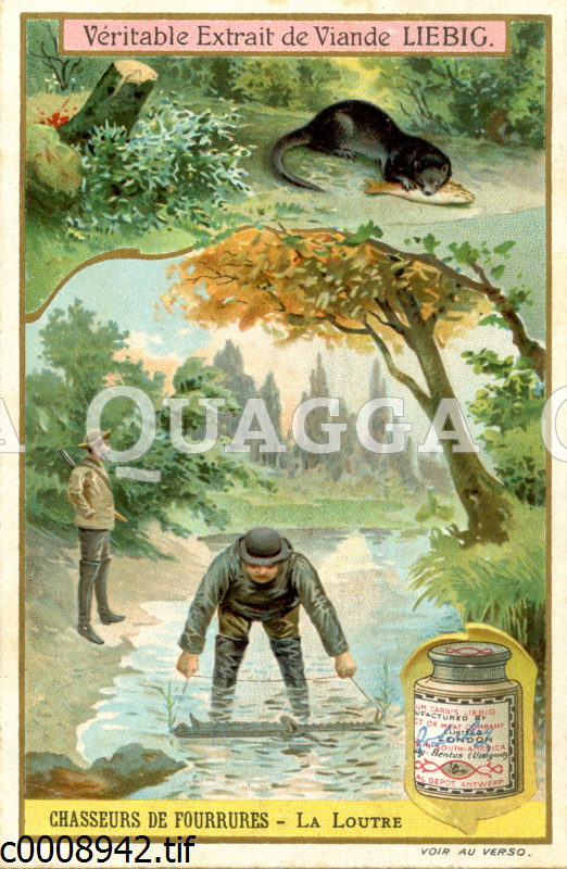 Hunt; Liebig images; furs; Fur; Fur hunting; Liebig’s meat extract; Oblate; Advertising image; French; Liebig-image; otter; Otter; Liebig image; Trappers; Trapper; Hunter; Justus von Liebig; Liebig; to hunt,