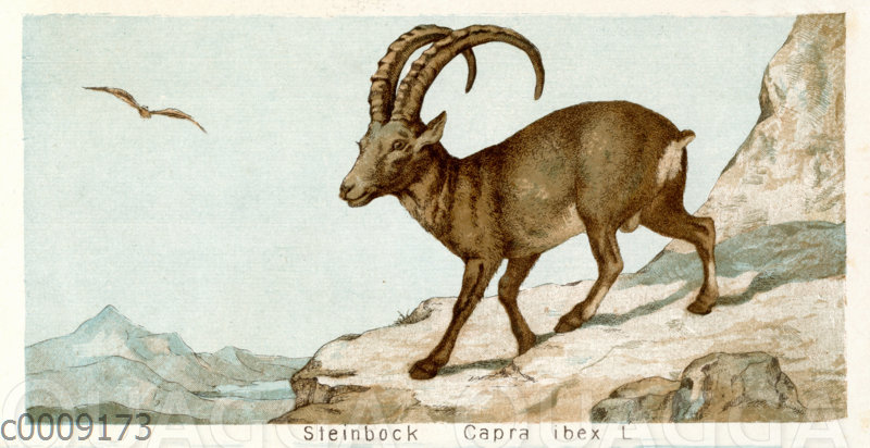 Steinbock: Zeichnung/Illustration/Farbholzstich – Capra ibex – –