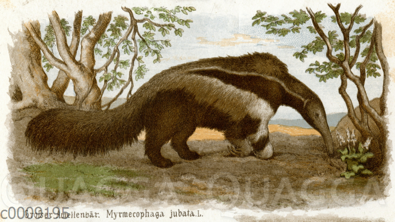 : Zeichnung/Illustration/Farbholzstich – Myrmecophaga tridactyla – Anteater, ant bear – tamanoir, fourmilier géant, grand fourmilier