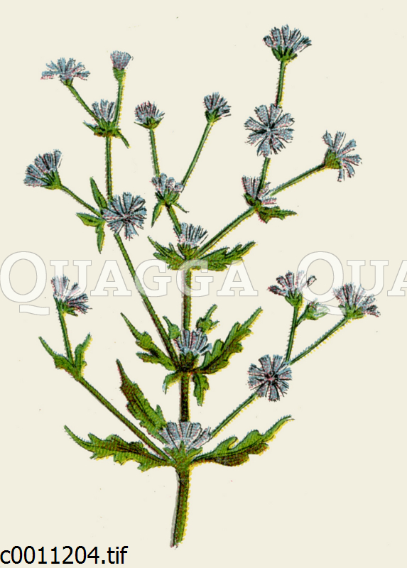 Wegwarte: Zeichnung/Illustration/Chromolithographie – Cichorium intybus – –