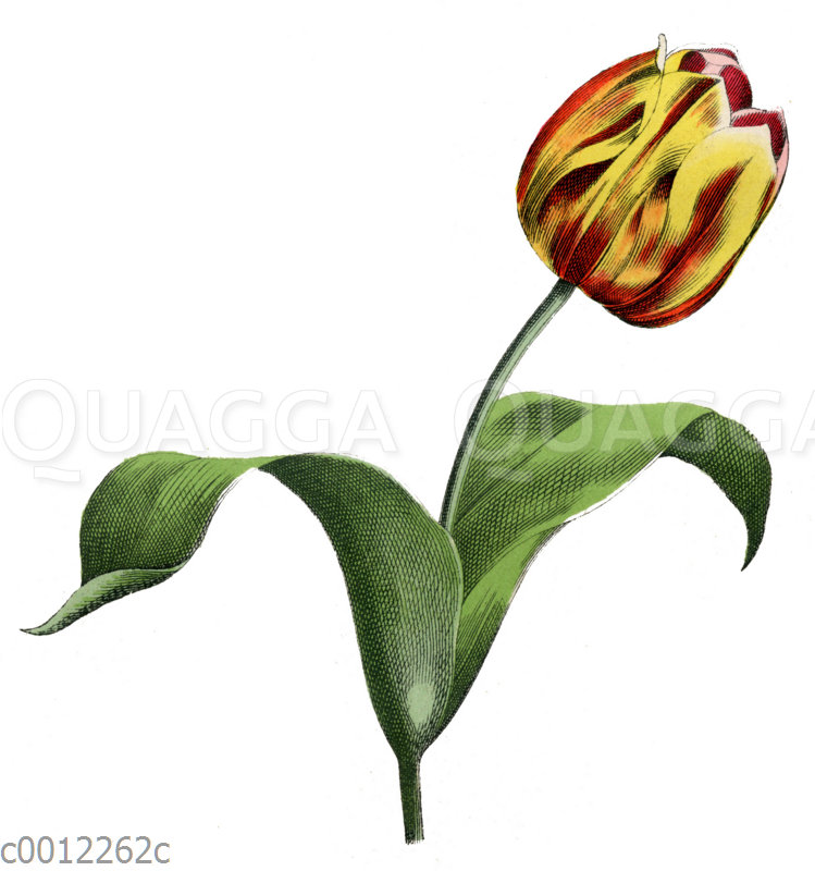 Garten-Tulpe: Zeichnung/Illustration/ – Tulipa gesneriana – Didier’s tulip or garden tulip – tulipe des jardins