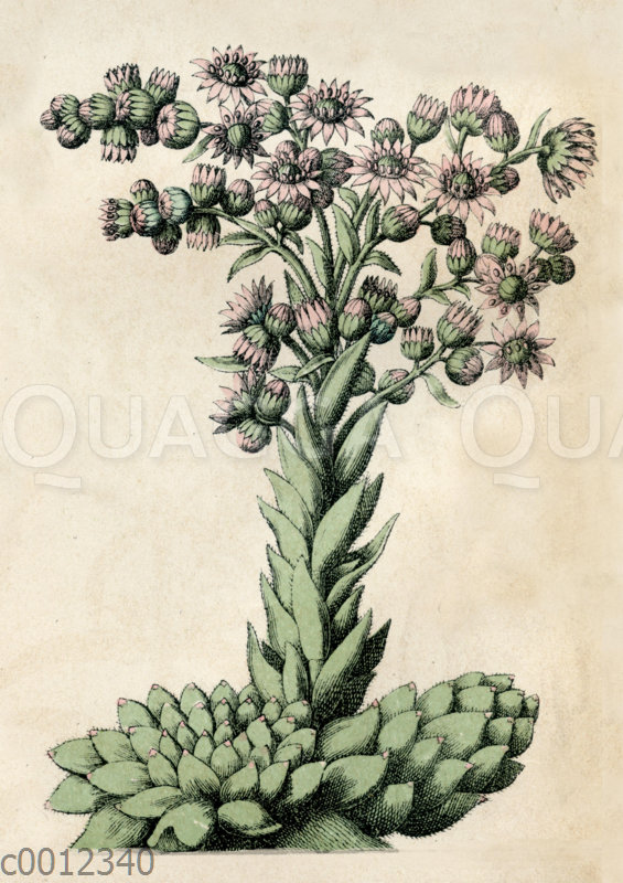 Gemeine Hauswurz: Zeichnung/Illustration/Chromolithographie – Sempervivum tectorum – houseleek – Joubarbe des toits