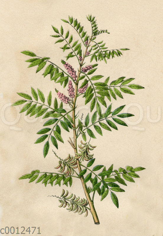 Anil-Indigo: Zeichnung/Illustration/Chromolithographie – Indigofera suffruticosa – anil indigo – indigo bâtard