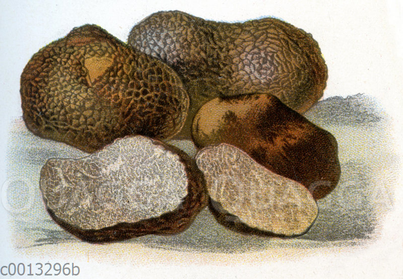 Périgord-Trüffel: Zeichnung/Illustration/Chromolithographie – Tuber melanosporum – –