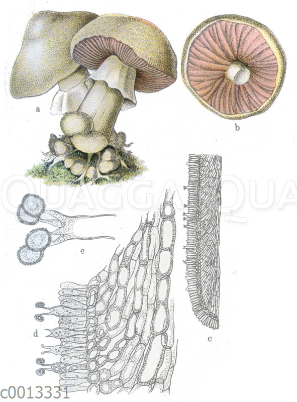 Champignon: Zeichnung/Illustration/Chromolithographie – Agaricus campestris – –