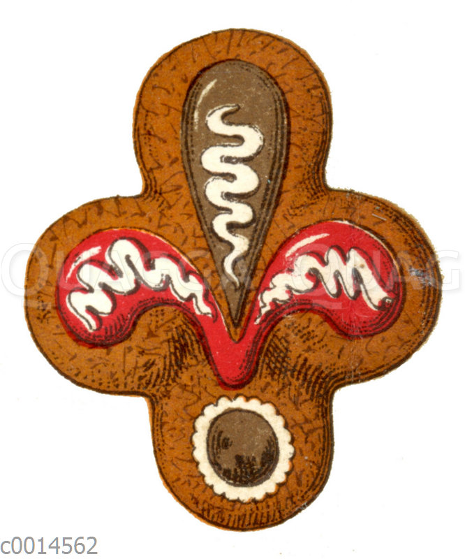 Lebkuchen mit Dekor: Zeichnung/Illustration/Chromolithographie – – Gingerbread with decor – Pain d’épice avec décor