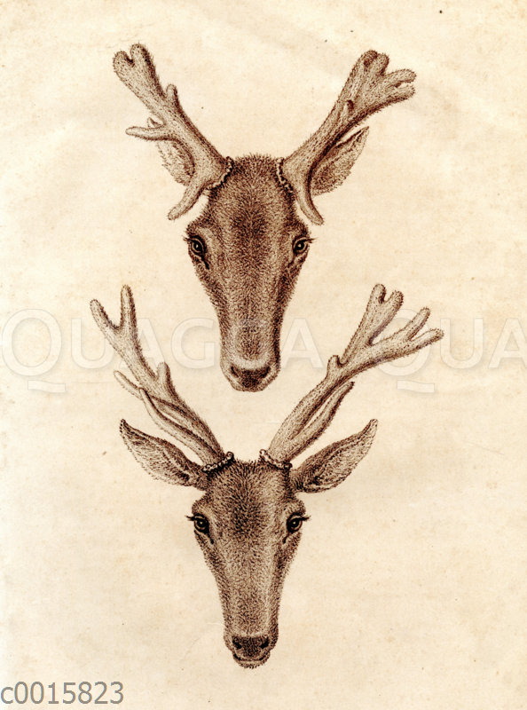 Rothirsch, Geweihbildung: Zeichnung/Illustration/ – – –
