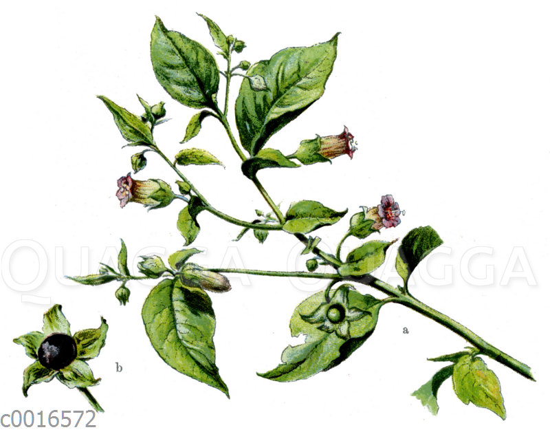 Tollkirsche: Zeichnung/Illustration/Chromolithographie – Atropa belladonna – belladonna – belladone