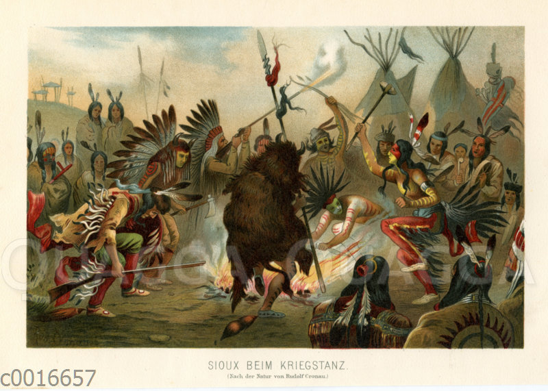 Indians; Bison; Bison fur; Buffalo; Buffalo hide; Feather headdress; Fur; War; War Dance; Sioux; dance, Indiens; bison; fourrure de bison; buffle; cacher Buffalo; coiffe de plumes; Je suis tombée; guerre; War Dance; Sioux; danse
