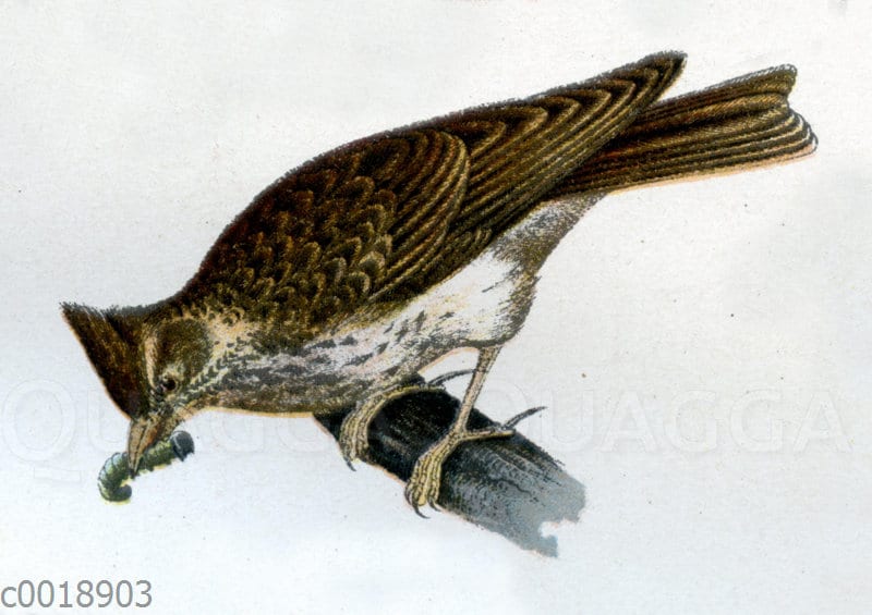 Haubenlerche: Zeichnung/Illustration/Chromolithographie – Galerida cristata – crested lark – Cochevis huppé