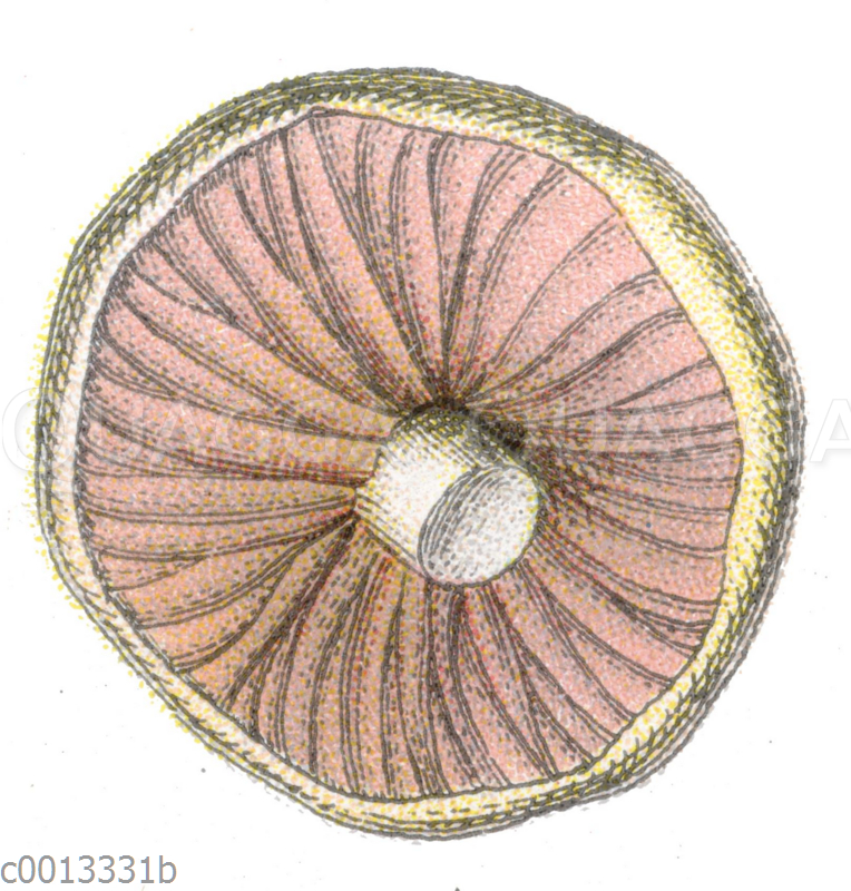 Champignon: Zeichnung/Illustration/Chromolithographie – Agaricus campestris – –