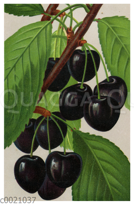 Kirsche, Süßkirsche, Sorte: Mödinger: Zeichnung/Illustration/Chromolithographie – – –