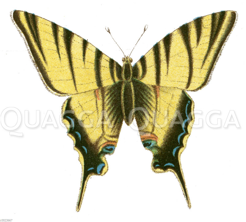 Segelfalter: Zeichnung/Illustration/Chromolithographie – Iphiclides podalirius – Scarce Swallowtail – Flambé