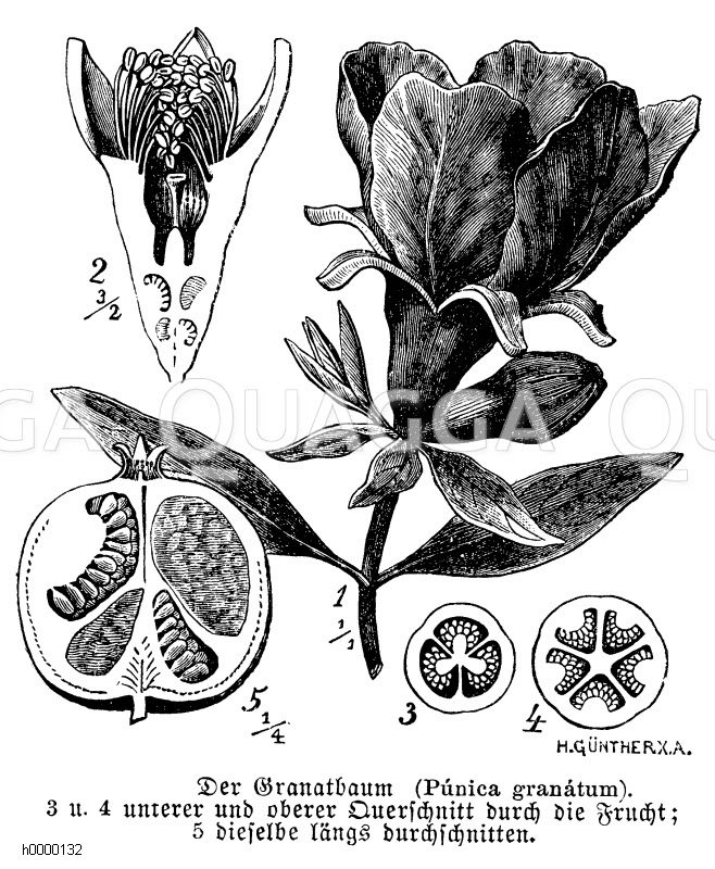 Granatapfelbaum: Zeichnung/Illustration/ – Punica granatum – Pomegranate – granadier