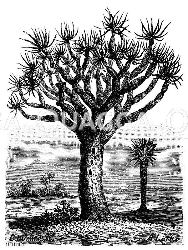 Drachenbaum: Zeichnung/Illustration/ – Dracaena draco – Dragon Tree –