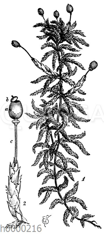 Kahnblättriges Torfmoos mit Kapsel: Zeichnung/Illustration/ – Sphagnum cymbifolium – –