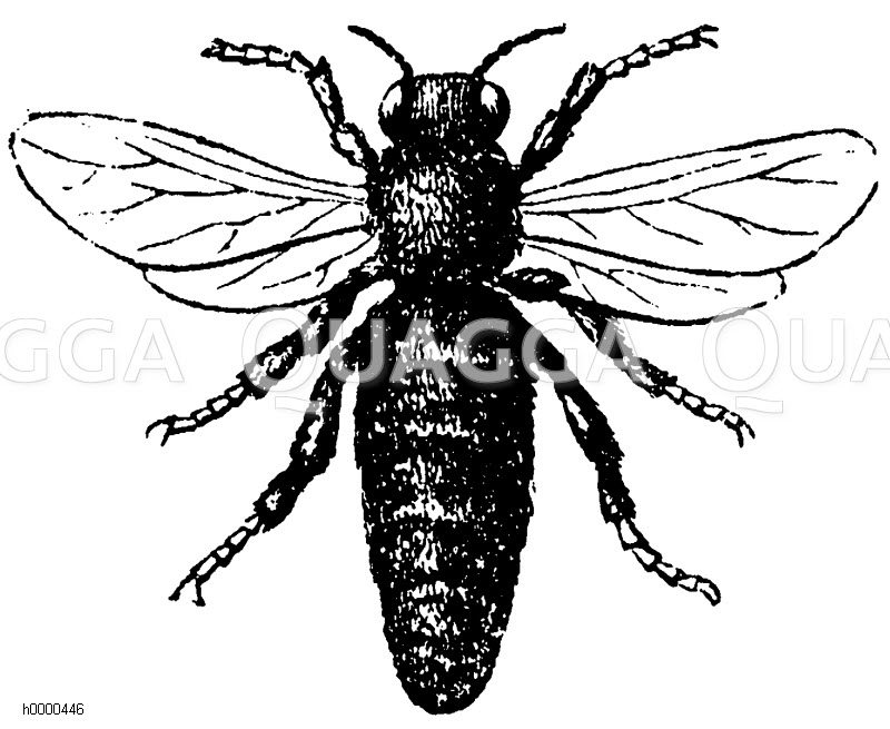 Honigbiene: Zeichnung/Illustration/Holzstich – Apis mellifica – Honeybee –