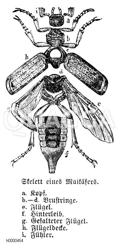 Maikäfer, Skelett: Zeichnung/Illustration/Holzstich – Melolontha melolontha – cockchafer – hanneton commun