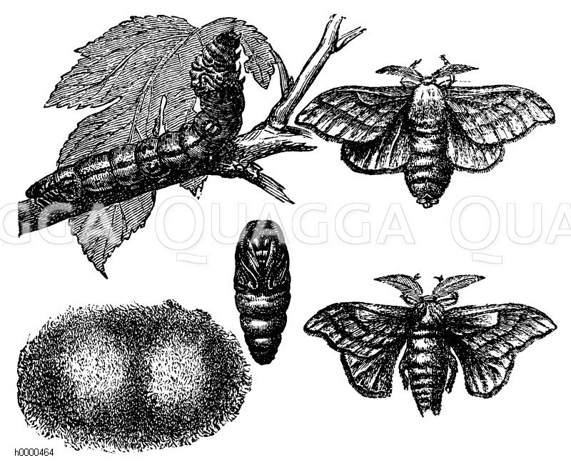 ![Seidenspinner: rechts oben: Weibchen, rechts unten: Männchen, mitte: Puppe, links oben Raupe, links unten: Kokon [Digital]](https://www.quagga-illustrations.de/wp-content/uploads/2014/03/h0000464.jpg)