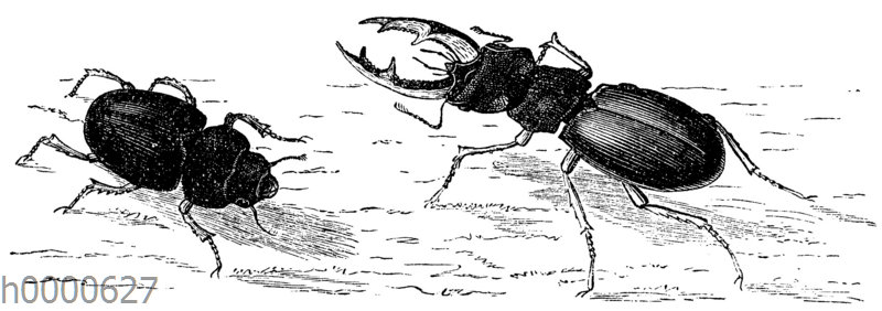 Hirschkäfer, Kammhornkäfer: Zeichnung/Illustration/Holzstich – Lucanus cervus – European stag beetle – Lucane