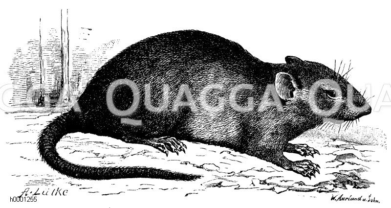 Wanderratte: Zeichnung/Illustration/Holzstich – Mus decumanus – –