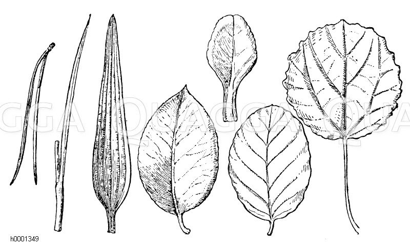 Blattformen: Zeichnung/Illustration/Holzstich – – Leaf shapes –