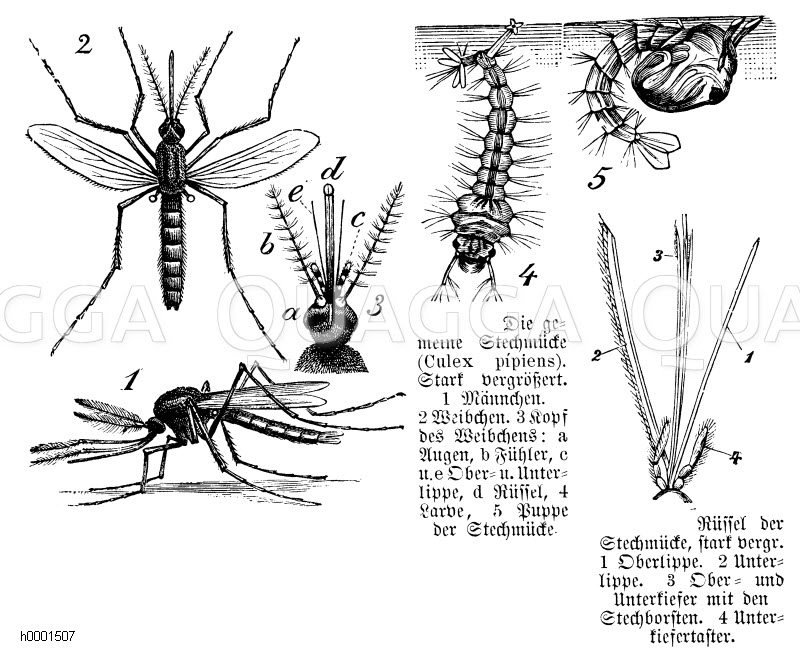 Stechmücke: Zeichnung/Illustration/Holzstich – – mosquito – moustique
