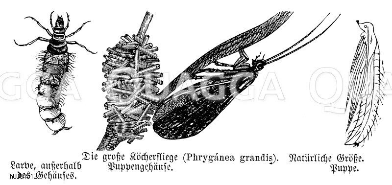 Große Köcherfliege: Zeichnung/Illustration/Holzstich – Phryganea grandis – –