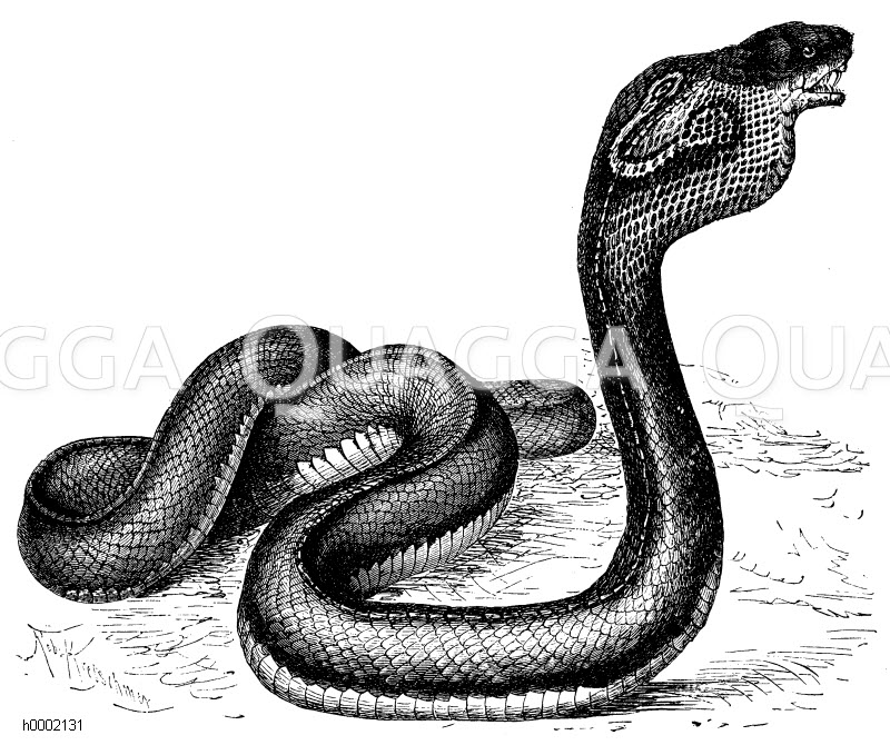 Brillenschlange: Zeichnung/Illustration/Holzstich – Naja tripudians – Cobra –